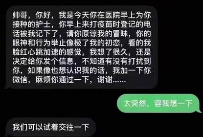 “帅哥,我是为你接种疫苗的护士”“你像极了我的初恋,我们试着交