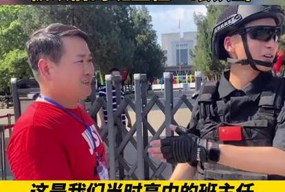 安徽淮南,一名特警队员拉着穿红衣的男子介绍:“这是我们当时高