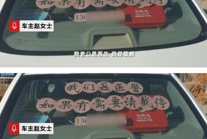 甘肃庆阳一辆私家车上贴着一句话“我们是医警,如果有需要请截停”