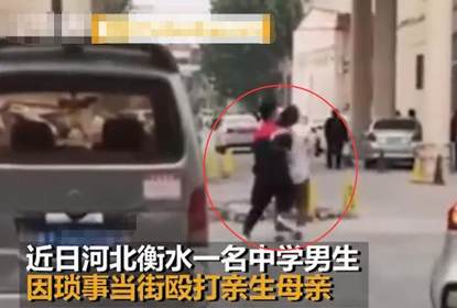有网友爆料称,在河北衡水的某街区内,一名少年因琐事当街殴打母