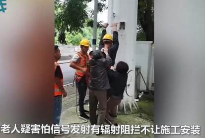 在环保路安装5G设备时,有老人疑害怕信号发射有辐射阻拦不让施工