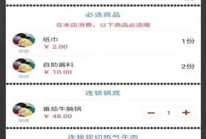 该火锅店扫码点餐界面 自己并没有点,但结账时发现账单含一包