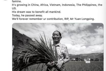 5月22日,袁隆平去世消息公布后,CGTN网红李菁菁在个人海外平台