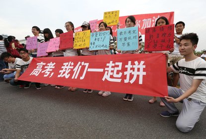 孩子进行了第一次模拟考试,全县九千多名初三学生,他考试在四千