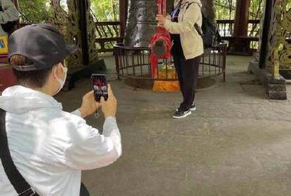 钟汉良在社交平台晒出自己帮女游客拍照的照片,并写道:“热心游