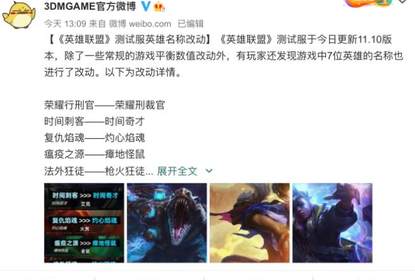 根据游戏媒体 3DM 的报道,《英雄联盟》测试服近日更新 11.10 版