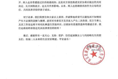 演员赵丽颖和冯绍峰两人通过自己的工作室宣布了两人离婚的消息,
