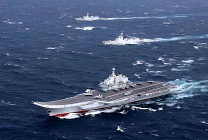 近日,中国海军组织“辽宁”号航母编队在台湾周边海域进行训练。日