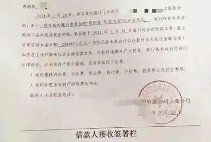 日前,一张某银行上海分行出具的《个人贷款提前收回告知函》在网