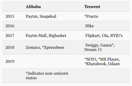 阿里巴巴和腾讯在印度的投资