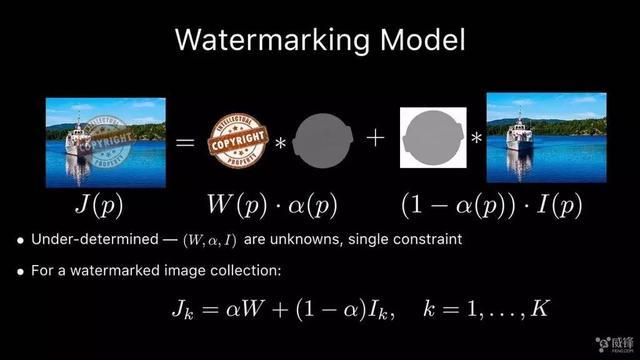 Google 测试了用 Photoshop 软件去除水印,这是一项非常繁杂的工作,对于专业设计师来说用这种方法去除水印需要花费 9 分钟的时间。但在 Google 的技术中,他们会下载同一个网站的数百张照片,从中抽出水印实际的图像,然后使用减算法,为图像每一个像素都去除水印。
