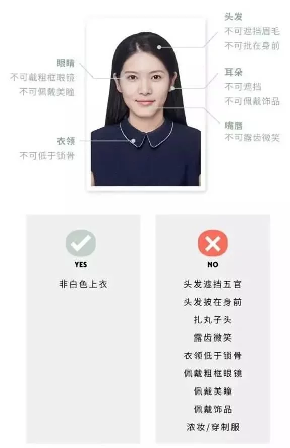 此类证件照已经迈入了“这也不能那也不能”的境地,小伙伴看着“NO”列表也是两眼一黑,但是,少年啊,你以为这就是严格链的顶端吗?