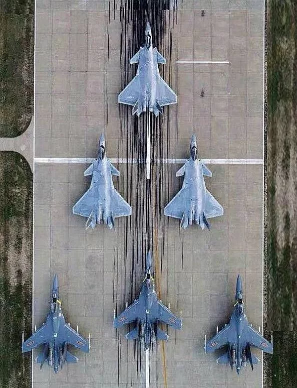 很有名的一张图,歼-20和歼-16的大象漫步