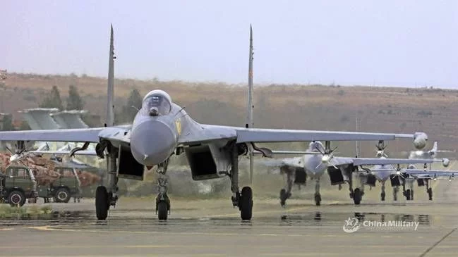 6月15日,西部战区空军航空兵某旅组织歼11战机战备拉动演练,锤炼部队快速反应能力。(来源:军网英文)