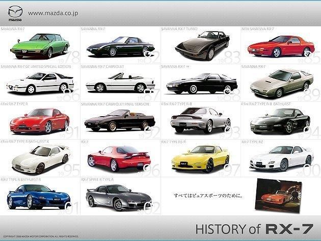 Mazda最具代表性车款RX-7历代车型。
