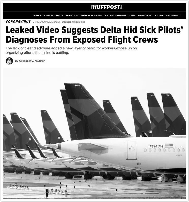 长达9分钟的视频似乎是秘密录制的,并于周四发布在YouTube上。在视频中,这名疑似是美国民航飞行员协会达美航空公司分会委员会主席布兰登·康威尔的工会代表告诉协会的其他领导人,一名达美航空的首席飞行员对该公司的机长们说,“告诉别人你被感染,并不是你的工作。” 《赫芬顿邮报》认为,这是试图隐瞒有人被感染的事实。 然而,达美航空拒绝透露上述首席飞行员的姓名,也拒绝确认是否会对这些言论进行调查。达美航空一位发言人说:“我们知道该视频及其包含的讨论,并正在对此关注。我们最初的解读是,这并不符合(美国疾病控制和预防中心CDC)指导的通报程序。” 但在周五,达美航空向飞行员发送了更新的指南,要求在发现有同事新冠病毒检测结果呈阳性时应及时报告。周五傍晚,有空乘人员还表示,发送给飞行员的新指南尚未通过官方渠道分发给其他员工。 在《赫芬顿邮报》获得的一份备忘录中,达美航空表示,公司领导层将识别并通知”与“有症状或确诊为新冠肺炎”的任何飞行员或工人“长时间密切接触”的任何员工,时间为“患病员工开始出现感染症状的最初48小时内”。另外,根据政策变化,达美航空现在认定的“长时间密切接触”,是指在6英尺内距离连续接触10到30分钟,时间跨度为从出现感染症状的两天前开始,这也将可能接触到患病员工的工人的范围扩大了。达美航空发言人摩根·杜兰特在电子邮件中说:“在某些情况下,根据临床研究,达美航空可能会通知员工需要进行自我隔离。” 然而,公司高管要求飞行员隐瞒感染情况遭到曝光,使达美航空的空乘人员和其他机组人员陷入了恐慌。一位担心受到公司报复而不愿透露姓名的达美航空工作人员表示,为了减少受到感染的风险,很多空乘人员已经休假了。由于达美航空管理层没有提供明确的信息来说明,具体哪个航班的哪些人新冠病毒呈阳性反应,一些工作人员不得不自费预订了旅馆客房自我隔离,避免将病毒传染给家人。 据彭博社报道,周二,ALPA的国家代表致信美国联邦航空管理局(FAA),抱怨说某些航空公司没有遵循CDC的指导,来报告员工是否已经接触过新型冠状病毒。ALPA还在其网站上表示,截止到周五,对新冠病毒呈阳性反应的达美航空飞行员人数已从前一天的32人增加到48人。 而在被曝光的视频中,ALPA执行主席赖安·施尼茨勒也表示,更多的飞行员表现出了感染症状,但没有接受检查。他说:“我们认为这一数字非常重要,但我们没有数据。航空公司正在掩盖。” 国际机械师和航天工作者协会的航空公司助理协调员詹姆斯·卡尔森说;“令人悲痛的是,达美航空的乘务员和其他工人——地勤人员、售票员、停机坪服务和机修人员都不知道他们现在是否可以信任该公司。”他回应了空乘人员要求对首席飞行员进行调查的呼吁,并表示隐瞒有关感染的信息“应该受到谴责”。