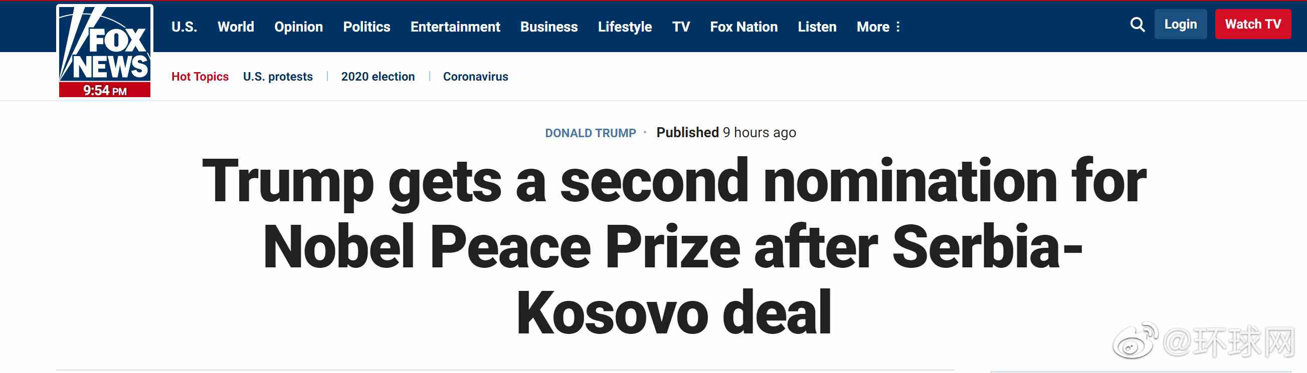 【快讯!外媒:#特朗普获今年第二个诺贝尔和平奖提名#】