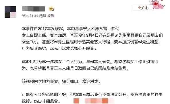 演员吴磊的一位粉丝晒出与航空公司工作人员的聊天对话音频,称另一名粉丝多次盗用吴磊的航空里程兑换机票,一共用掉了23万飞行里程。随后几天,多位明星纷纷发文表示,自己的航空里程也被不认识的人盗用。 多位明星航空里程被盗用 航空公司对于飞行次数多或者行程长的会员,会有里程记录,用这些里程可以兑换一些礼品,最受欢迎的就是里程兑换机票。 吴磊的里程被盗刷并不是他本人或工作室发现的,而是由一位自称吴磊粉丝的人在网上最先曝光的。一段近10分钟的视频中,该爆料人与航空公司客服人员多次对话。 △粉丝曝光他人盗用吴磊里程(图源微博截图) 粉丝:据我所知是有人用这张卡的里程兑换了客票。我现在想跟你这边核对一下可以吗? 客服:可以,您稍等,我把账户信息打开一下。 爆料人与客服的对话显示,一名姓沈的粉丝从2017年开始绑定了吴磊的航空公司会员账号,并把自己和朋友添加为受让人。 △粉丝微博中提供被盗用里程数据(图源微博截图) 吴磊里程被盗刷一事引发关注后,多位明星纷纷表示,查询后发现,自己的航空公司会员卡也绑定了多位不认识的受让人,被盗刷了里程。
