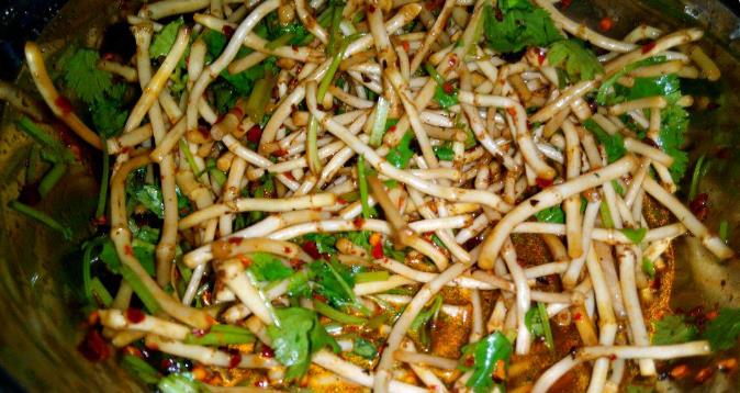 4、鱼腥草 也叫折耳根,四川周边地区的人们很喜欢这种特殊的味道,但是第一次吃这个的朋友接受度就非常低了,很多人吃过一次后表示再也不想尝试了。其实鱼腥草是一种非常有利于健康的特色美食,凉拌最好吃。