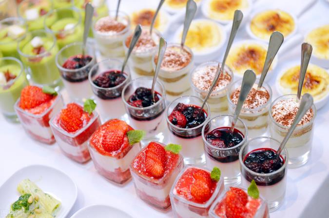 大部分人吃自助餐的时候第一步就是去拿小甜品,这些甜品蛋糕类的就放在大厅最显眼的位置,而且各式各样的小蛋糕种类很多,看着样样都想吃,于是就多拿几种放在盘里,端回自己的桌子先解解馋。殊不知这些小蛋糕是非常饱腹的,热量高吃不了太多就觉得饱了。