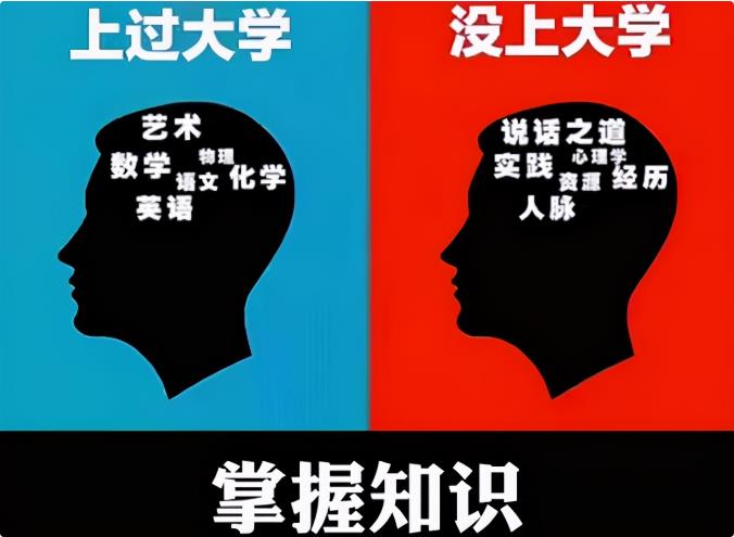 “掌握知识”的不同 上大学和没上大学的第一个区别,就是“掌握知识”的不同。上过大学的学生,理论性知识一般都比较专业。他们对待事情时,更容易去思考这件事情的本质。而且大学生更能够通过知识的积累,走向未来的科研道路。 没上大学的学生,在为人处事上有着过人之处。他们的说话之道,资源人脉都不是一些刚毕业的大学生所能相比的。还有最重要的一点,那就是实践操作能力也是毋庸置疑的。