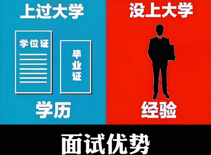 “面试优势”的不同 “面试优势”的不同,是上大学和没上大学最重要的一个区别。上过大学的学生,在未来的就业面试时有着学历的优势。就比如一些本科大学生,他们就可以凭借学历的优势去参加央企、国企的面试。 没上大学的学生,他们在就业面试时所能凭借的只有经验。从这里相比的话,这张图片还是很真实的。不过也有网友调侃道,“大学生,毕业后就是个打工人。上过大学的大学生,毕业后还不得给没上大学的人打工。”只能说在现今的社会中。不上大学想成为企业老板真的很难。