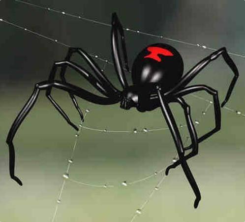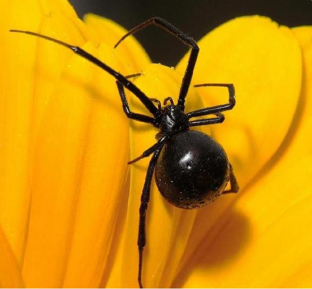 4、黑寡妇蜘蛛 黑寡妇蜘蛛的毒性不仅仅是指其毒性毒液性极强,而且它们还会在交配后把配偶吃掉,被黑寡妇咬伤之后会产生严重的肌肉痉挛症状,有时还会出现暂时的脊髓或者大脑麻痹,但很少会死亡,所有的黑寡妇蜘蛛腹部都有明显的鲜红色沙漏形图案,当然也有的种类还有其他鲜红图案,这只是一种警戒色。