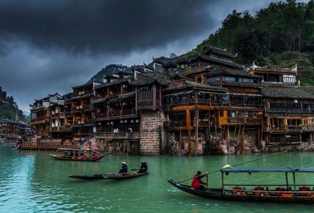 8、边城水色之美——湖南凤凰 这是一个远离都市繁华和喧嚣的质朴、恬静柔美的世界;是听着古城的鸡鸣狗吠,嗅着边地泥土的芬芳,置身于“优美、健康、自然又不悖乎人性”的温情湘西。这是文学巨匠沈从文笔下的《边城》。凤凰古城曾是沈从文魂牵梦绕、如诗如画的故土,是新西兰著名作家路易艾黎口中的“最美中国小城”,是无数游人、摄影师、画家心中的胜地。如今,过度的商业化让凤凰古城的名声传遍天下,虽然美则美矣,但那份恬静质朴却也再难寻回。
