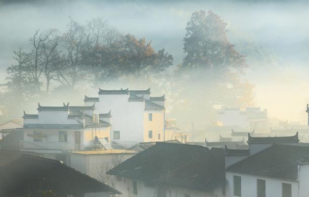 9、微风淡韵之美——江西婺源 这里是中国古村落之最,也是江南所有美丽村落的总称,那如梦如幻的晨雾炊烟,稳重淡雅的白墙瓦黛,有一种说不出的静谧和安详。春三月秋十月是去婺源最好的时候,三月那粉红的樱花和纯白的梨花点缀在漫山遍野金黄色的油菜花中,映衬着白墙灰瓦的徽派建筑,远看,别有一番滋味。十月不仅可以看到婺源一年一度的“晒秋”,且彼时树叶也已经开始红透,那四处弥漫的鲜红色渲染着整个村庄,并与炊烟、群山、白云形成意境深远的山水画卷,那是一年中婺源最妖娆的时节。
