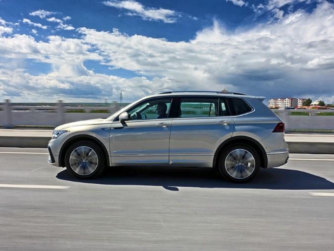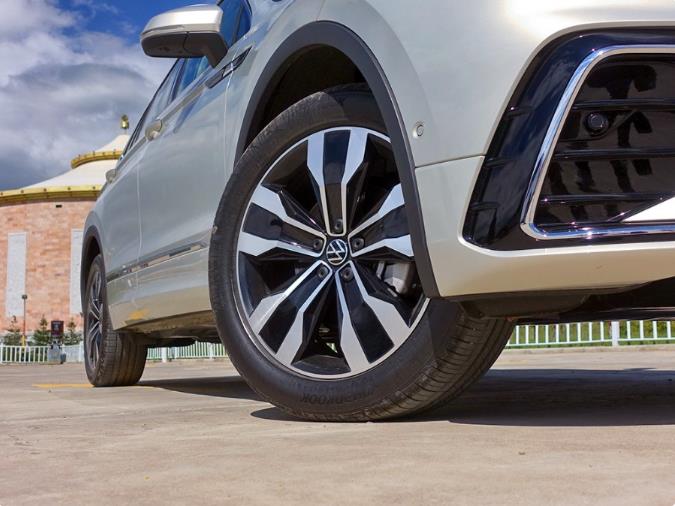此次试驾的是R-Line版,前包围的运动效果更加突出。搭配19英寸双五辐轮圈,视觉上的比例很合适,这款轮圈也是R-Line车型所特有的。由于是中期改款,所以整体的车身尺寸并没有太大的变化,只是因为前后包围的样式调整,让它的车身长度稍有增加。