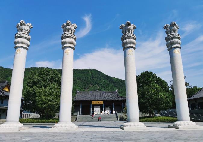可别小瞧这些小吃,寺庙将其做得极其美味,素烧鹅是我吃过最好吃的烧鹅,虽然是素的,却有着肉的质感,香浓美味,口感丰富,而且价格也不贵,一大片烧鹅才7元,豆干2元一串,非常便宜。 第三个:宁波阿育王寺 到宁波怎么能不去阿育王寺,这座寺庙以珍藏着释迦摩尼的真身舍利而得名,寺内有一座舍利塔,是每位香众都会前来的地方。阿育王寺不收门票,在当地有口皆碑,就连素斋也是无可挑剔。