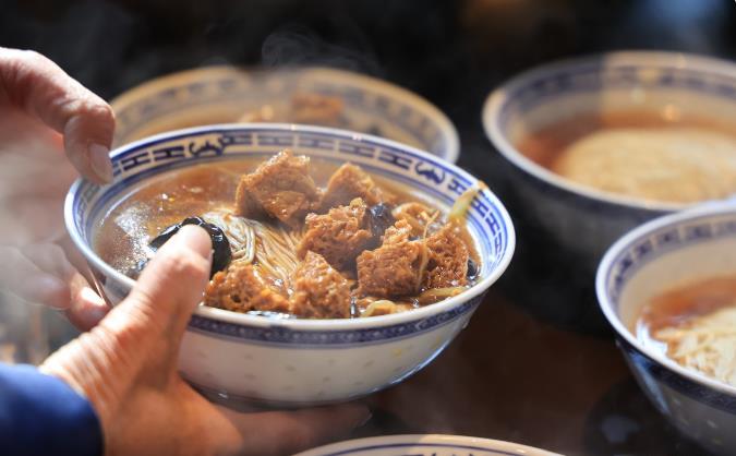 第五个:上海龙华寺 龙华寺的素斋在当地极为有名,许多白领人士都会到此品尝,到了饭点非常火爆,连位置都没有。餐厅提供面食,如罗汉面与福缘面,价格15元起步,还有辣白菜和素鸭条,考虑到上海的物价,这个价位已经很亲民了。