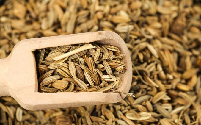 增香去腥,尤其脱水后香味浓烈,荤素菜均可使用,对原料要求不严格,可炖菜,调汤,调馅等;但需要长时间烹煮才能有效释放独特香味,同时切勿太多,否则苦味突出; 12、小茴香