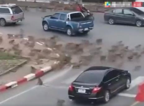 泰国数千只猴子在华富里府街头分成两派“火拼”。媒体称猴子身后司机狂按喇叭,但它们不予以理会。据悉,猴子在打斗的过程中没有攻击路人,但几只猴子受了伤、路上有些许血迹。最终它们结束争斗,自行离开了现场。
