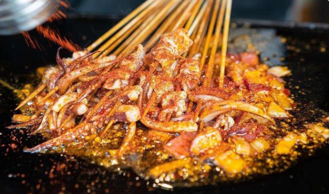 黄喉很多人不知道是什么,但你吃火锅的时候肯定听服务员说过,不光可以涮,用来烧烤味道同样好,烤出来脆嫩有嚼劲,越吃越香,用来下酒是极好的。黄喉是牲畜的血管,结构比较特殊,无法造假。摊主的利润也比较低,大多的烤黄喉,都是用来吸引吃客而已,赚不到大钱的,所以不妨多点黄喉吃。 四、烤鱿鱼类
