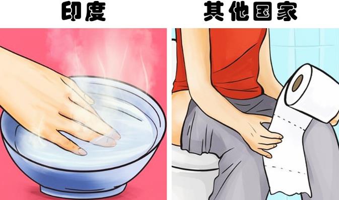 如果在印度旅行,你可能会发现在街头很难找到厕所,又或者你会发现一些基本就是露天的厕所。然而,当你找到一些封闭的厕所的时候,你还会看到更为奇怪的一幕,就是厕所里没有提供厕纸,但却提供了一个可以装水的桶。这是因为印度人习惯于在上完厕所后用左手清洁,而不是用厕纸。正因如此,在生活中,他们往往会用右手进行握手等行为。