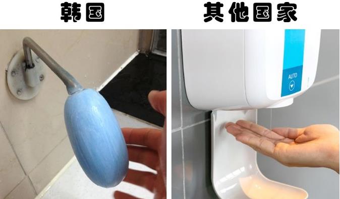 在柬埔寨的家庭厕所里,通常可以在马桶旁见到一种软管喷嘴,很多人可能会为此感到困惑,不知道它的用途。它其实有多种用途,例如用来冲洗屁股,也可以用来冲洗马桶,以及清洁厕所。 3、韩国公厕里的特制香皂