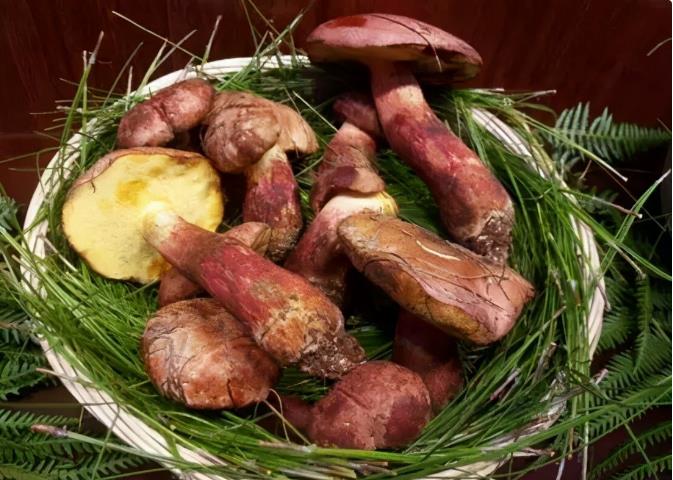 第七个,“白葱”,玫黄黄肉牛肝菌/Butyriboletus roseoflavus,即“白见手”,但也谈不上白,菌盖粉红,菌柄嫩黄,和“红见手”一样壮硕。既是“见手青”之一,当然也会有毒性,生食、炒不熟可能中毒,据说中毒几率比“红见手青”要低,但也不能造次,对“见手青”类必须保持敬畏,熟透为佳。
