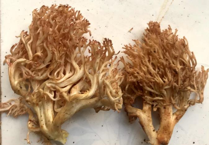 第八个,俗名好像是“扫把菌”,淡红枝瑚菌/Ramaria hemirubella。这种菌子的模样和普通人心目中的“蘑菇”相去甚远,子实体如同多分枝的珊瑚,颜色以象牙白和粉红色为主,气质超凡脱俗,恰似仙家瑞草。菌肉质地脆嫩、鲜甜爽囗,再加上颜值上佳,也被称为“野生菌之花”,颇受海内外老饕追捧。