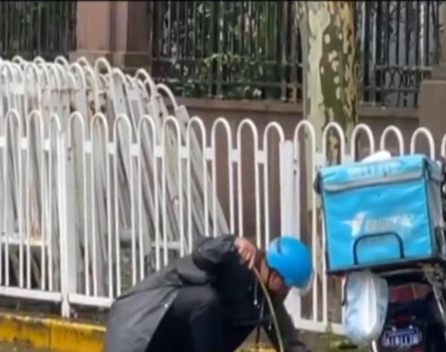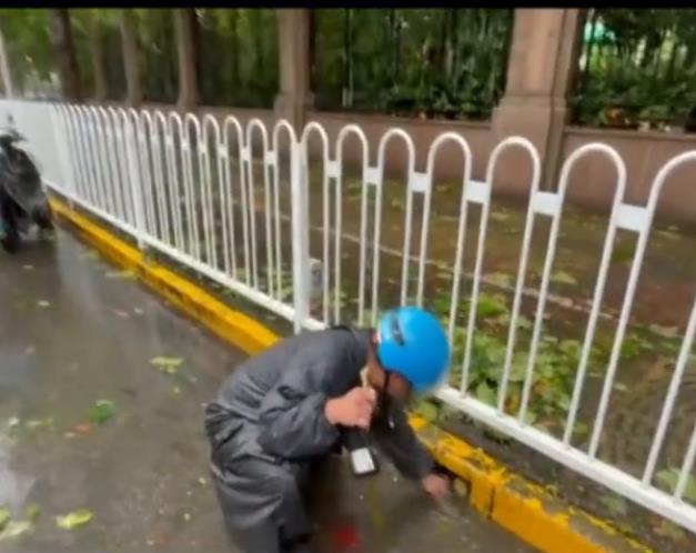 25日,台风“烟花”裹挟风雨而来。在上海闵行区莘庄工业区新源路鑫都广场,一外卖小哥在送餐的同时,还停下车来做了一件让人意想不到的事。在路边随手捡起一根树枝,开始清理被堵塞的排水口。之后,澎湃新闻联系到这个外卖小哥,他叫李佳佳,今年32岁。他觉得当时排水口堵塞,会比较危险。