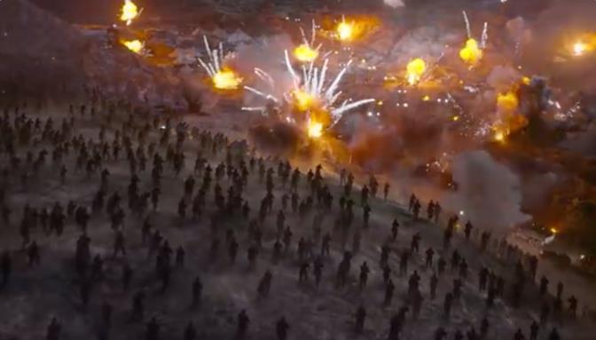 在零下四十度的严寒中,在连炮火都被冻住的情况下,志愿军向美军发动攻击,壮阔的场面让人肾上腺素飙升,搭配BGM,又有一种令人动容的悲壮感。