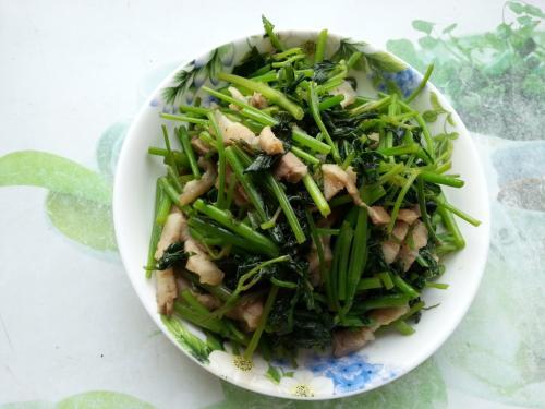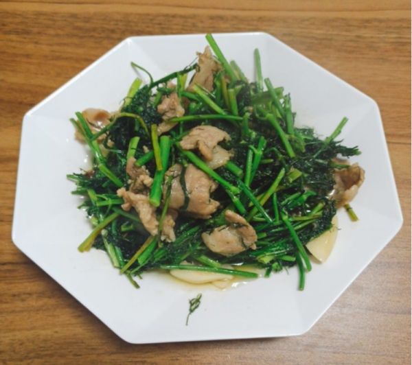 【茴香叶炒猪肉的烹饪食谱解析】 挑选食材:半斤茴香菜(茴香菜主要吃叶子,建议选择叶子多,根茎细一些的嫩茴香菜,茴香菜既可以当配菜,包饺子和包子也不错),半斤新鲜肥瘦相间的猪肉,半勺料酒,一勺黄酒,生粉一勺半,一些植物油,小米椒2个,几瓣蒜,一些生姜,若干清水,其他。 1:一些茴香菜掐掉不能食用的部分(老茎和黄叶),嫩茴香菜菜叶很脏,需要将其放入器皿里,用清水冲洗一遍。 2:半斤猪肉清洗干净,肥肉和瘦肉分开切成细丝或者片,瘦肉需要口感更好,放入碗中放入盐,酱油和黄酒少量,一些生姜丝,瘦肉丝抓一会儿,肉丝 3:锅中放入油少许,油烧热加上蒜头和小米椒,先倒入肥肉炒一炒,然后下瘦肉丝煸炒,记得是大火炒一会儿。 4:将瘦肉丝炒熟盛出,锅底继续加上一些底油,加上茴香菜段炒出水分,香味扑鼻的味道来。 5:然后倒入之前炒熟的瘦肉,让茴香菜的香味激发出来,快速将两者炒一小会儿。 6:加上少许料酒和老抽,加上一些生姜丝和蒜片,煸炒均匀,加上食盐少许调味,一些鸡精和胡椒粉,锅铲快速炒均匀。 7:还可以滴上若干香油,出锅,茴香菜的香味和猪肉搭配,实在太香了。 茴香叶炒瘦肉是南方的家常菜肴,目前猪肉价格平稳,才13块钱一斤,猪肉搭配茴香菜炒着吃,充分发挥了两者的优点,让瘦肉吃起来更香,本身猪肉就很嫩,营养价值也不低,满足我们胃口的同时,还可以补充一天需要的能量。茴香菜属于绿色的高维生素蔬菜之一,叶片含有叶酸和草酸,丰富茴香素和膳食纤维物质,有效起到抵御湿气入侵,减少便秘和肠道疾病发生。