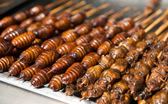 蝉蛹 据我的东北朋友说,蝉蛹是一种特别美味的食物,尤其是在烧烤店,几乎每家店都能见着蝉蛹的身影。外酥里嫩,一口一个十分过瘾!据说蝉蛹蛋白含量很高,加上口感鲜嫩,用来下酒吃非常巴适。