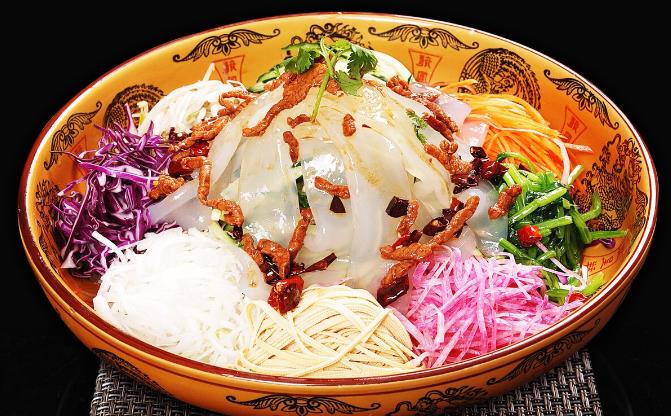 其实,猪肉炖粉条这道菜在东北已经“够硬”了!但这道菜的卖相确实不怎么样。菜上桌以后给人的感觉就是白菜、粉条和猪肉乱七八糟混合在一起,南方人表示实在是不敢恭维,这哪里比得上大排档里的一顿麻辣小龙虾解馋? 东北大拉皮 最后这道“够硬”的东北菜就是东北人招待亲朋时必上的一道菜了——东北大拉皮。从外形上看,有点像南方人吃的凉皮,但其实两者成分截然不同。正宗的东北大拉皮必须得用绿豆淀粉来做,口感比起凉皮来说,要更加地劲道Q弹。