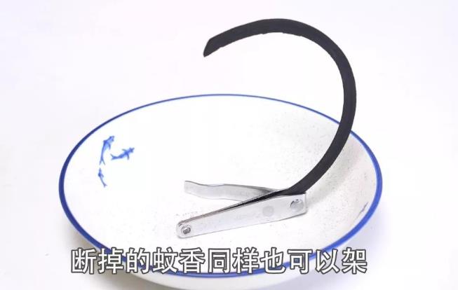 这样一个简单好用的蚊香支架就完成了,在下面放一个盘子还可以用来接灰。 指甲刀除了可以用来架整盘的蚊香,断掉的蚊香同样也可以架。