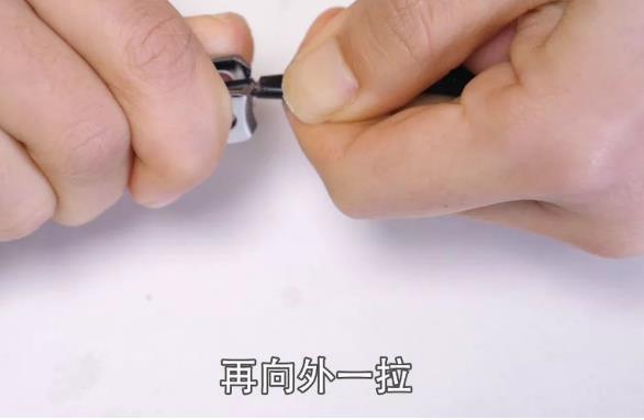 妙用四:剥电线 把指甲刀拆开,这样指甲刀的开口就会变大。 我们把它在电线外皮上转一转,再向外一拉,就能轻松的剥掉线皮了。