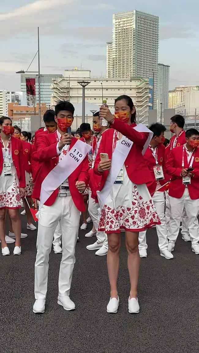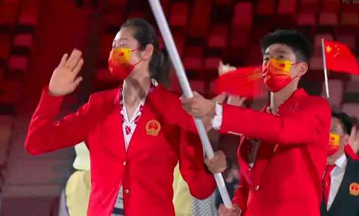 其中中国体育代表团的2位旗手分别是女排奥运冠军朱婷和跆拳道奥运冠军赵帅,穿裙子的朱婷格外抢镜,还向现场挥手示意。