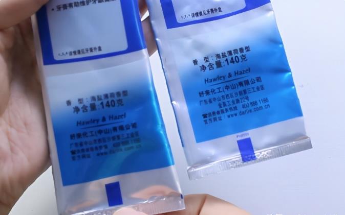 正规的牙膏“颜色条”是在底部正中间的位置,而且是接近最尾部的地方,还会有清晰的条码;左边的牙膏“颜色条”距离尾部露出了0.5CM左右,而且上面也没有条码,所以大家辨别牙膏的真假,可以看牙膏的“颜色条”。