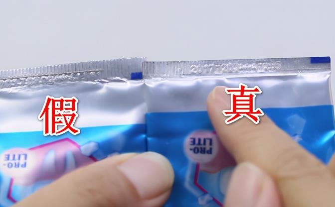 辨别牙膏真假的小妙招三:看牙膏的生产日期 正规生产的牙膏,不仅有具体的生产地址,也会有具体清晰的生产日期。牙膏的生产日期一般都是按压形成的,左边的这个假牙膏生产日期非常模糊,右边的真牙膏生产日期是清晰可见的,尾部的条纹也是均匀的。