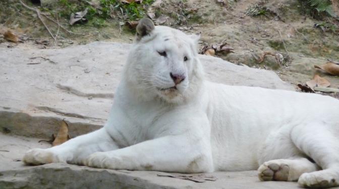 7、其它特别的老虎 (1)白虎 有人问我,白虎是一个独立的物种吗? 我的回答是“不”。事实上,它们不是独立的亚种。它们之所以呈现白色,是因为一个隐性基因发生了突变,白色的皮毛是由于缺少黑色素而造成的,而橙色皮毛的孟加拉虎中就有这种色素。